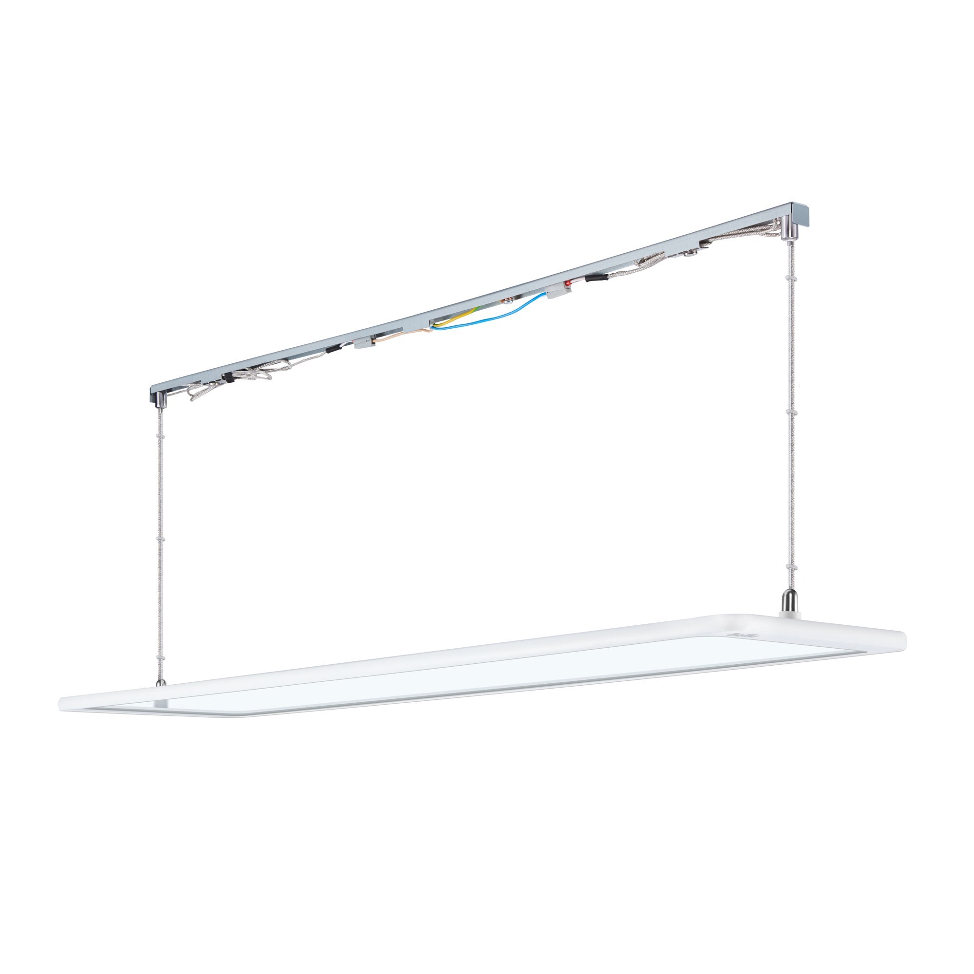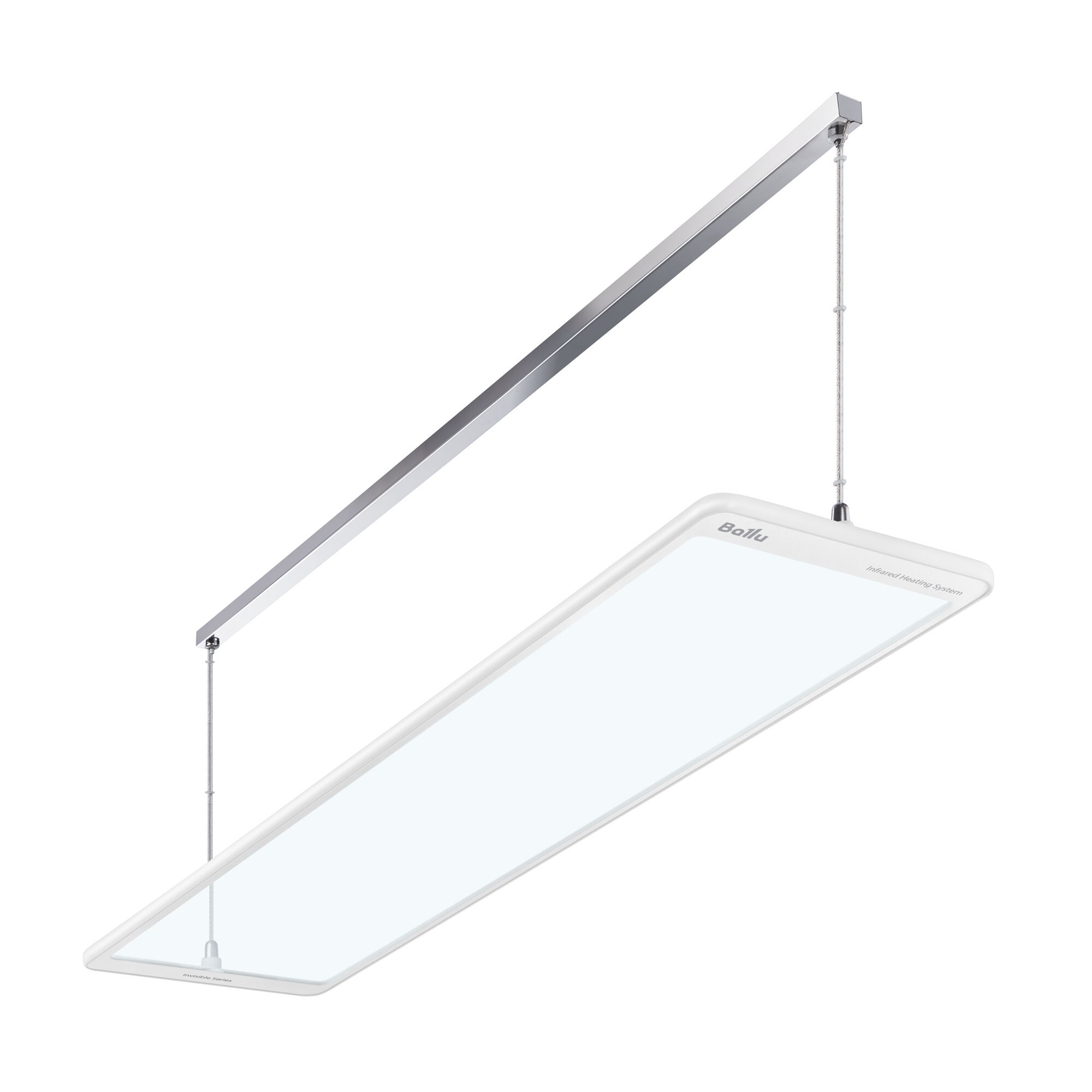 Повышенная степень пылевлагозащиты IP54 допускает применение обогревателей даже во влажных помещениях (ванные комнаты, бани, бассейны). Подвес на тонких незаметных тросах в комплекте.