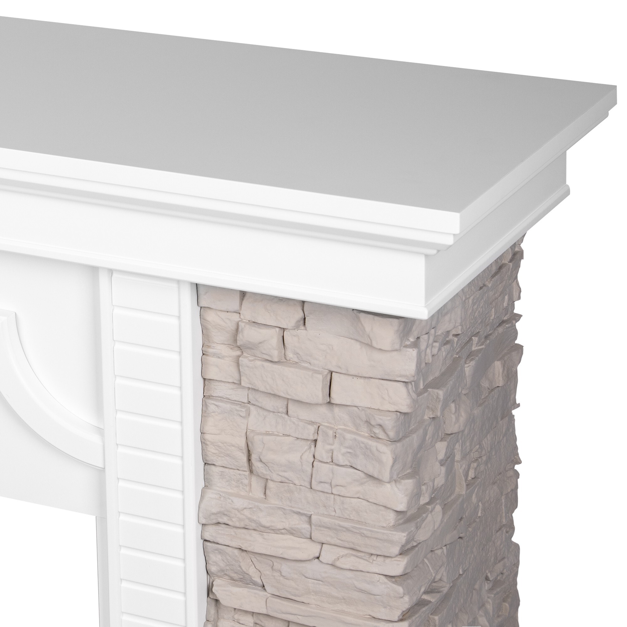 Портал Firelight Florida 25 выполнен из дерева и серого сланца, который имитирует камень. Декорирован боковыми колоннами и строгими узорами на деревянных деталях. Роскошное сочетание белого и серых цветов придают ему утонченности и изысканности.